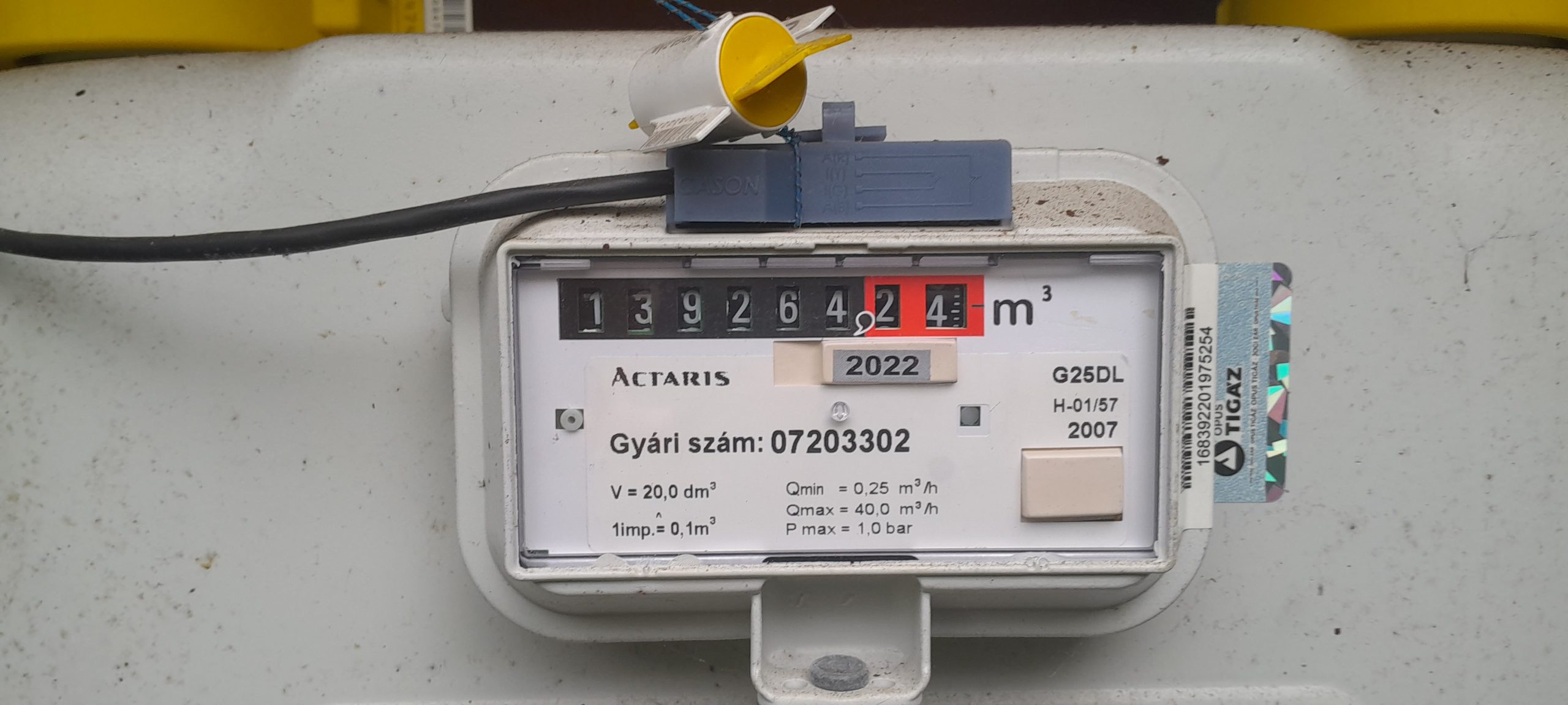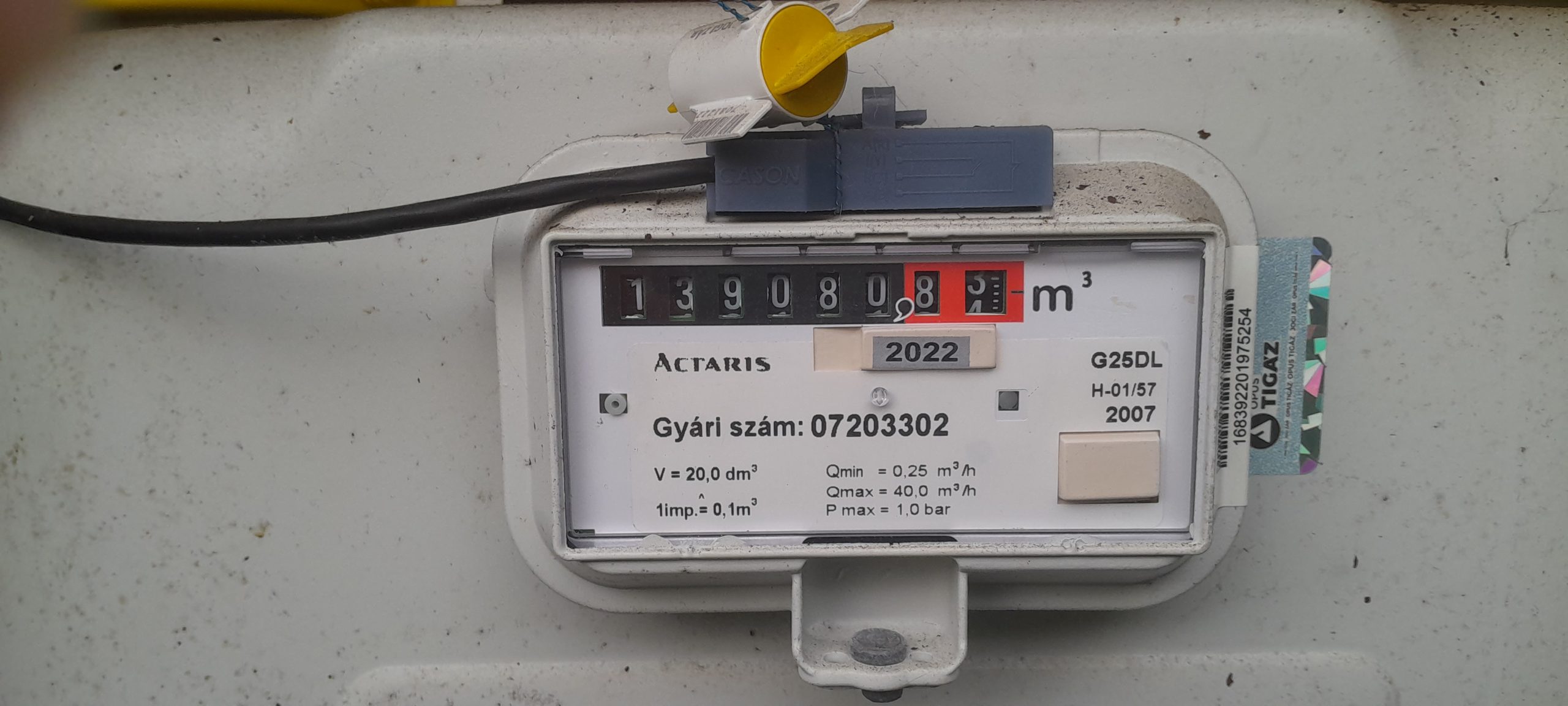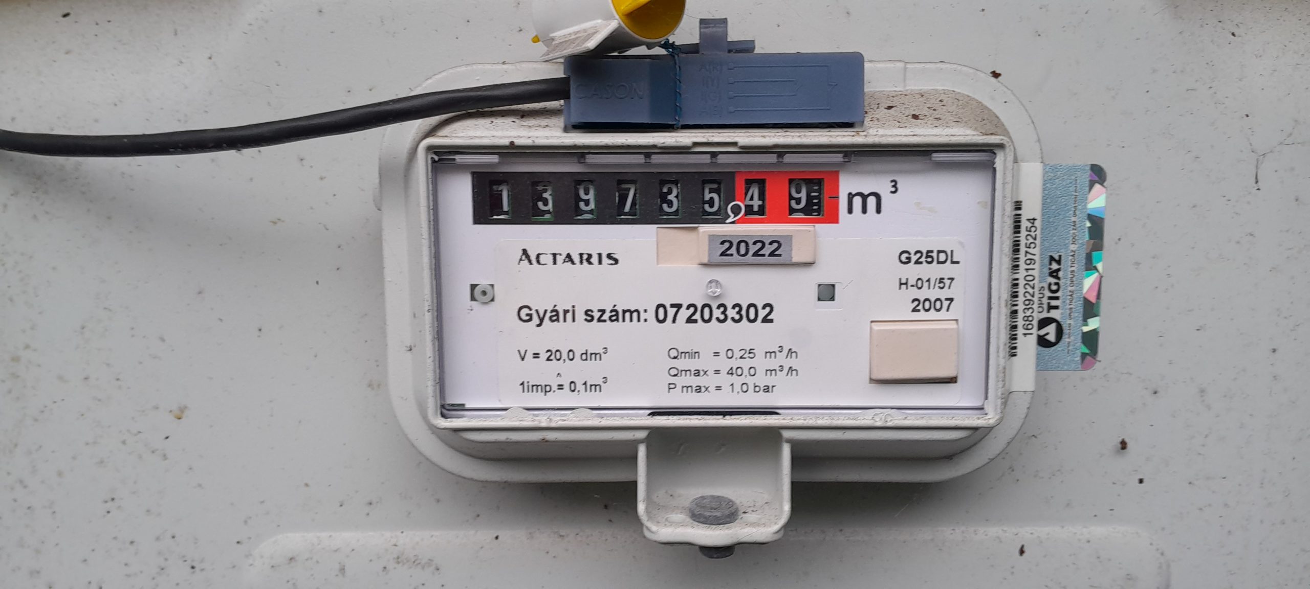 Gázóra állás (m3):