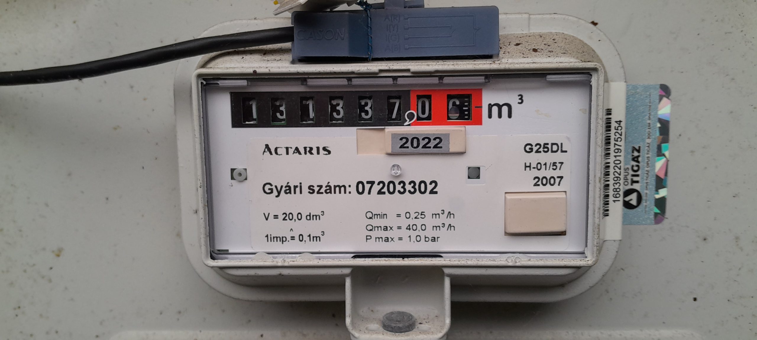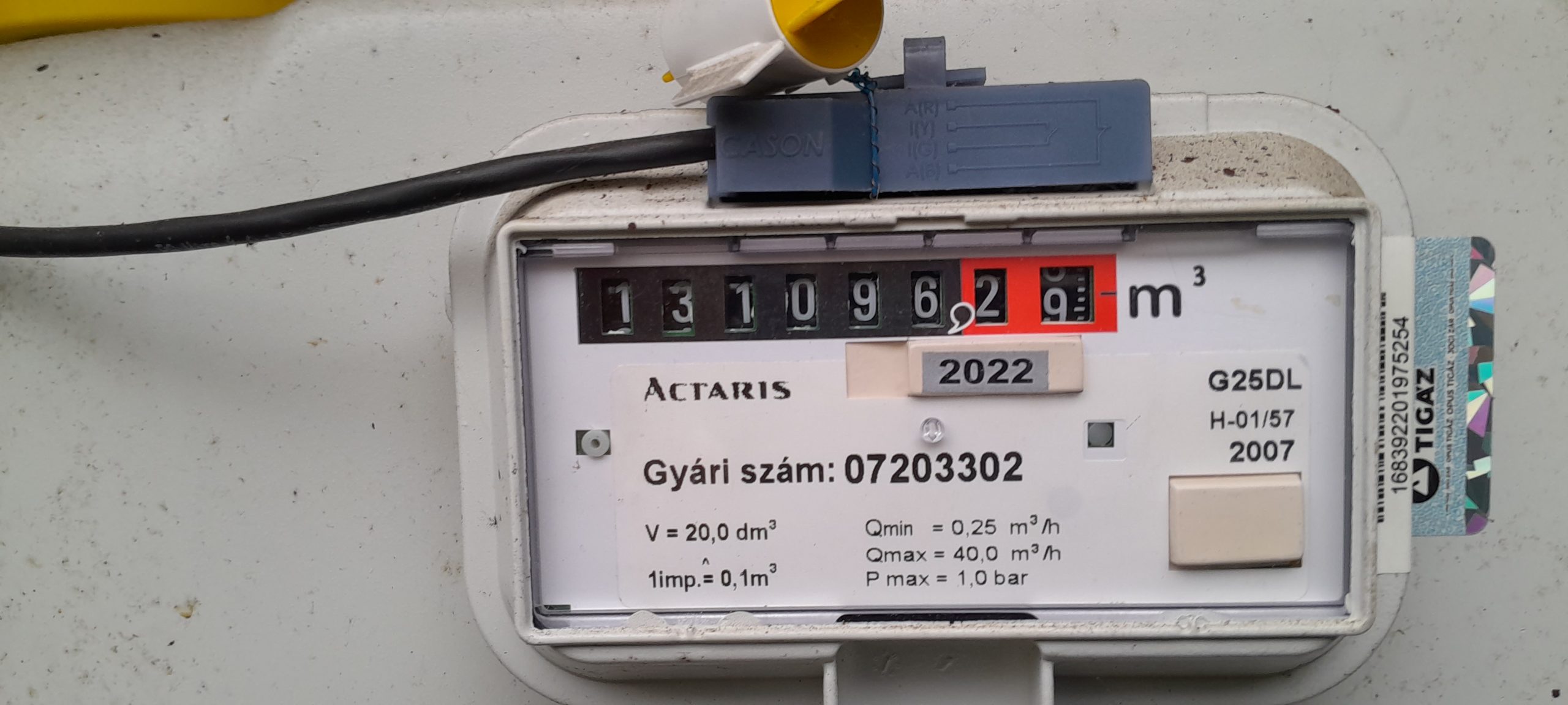 Gázóra állás (m3):