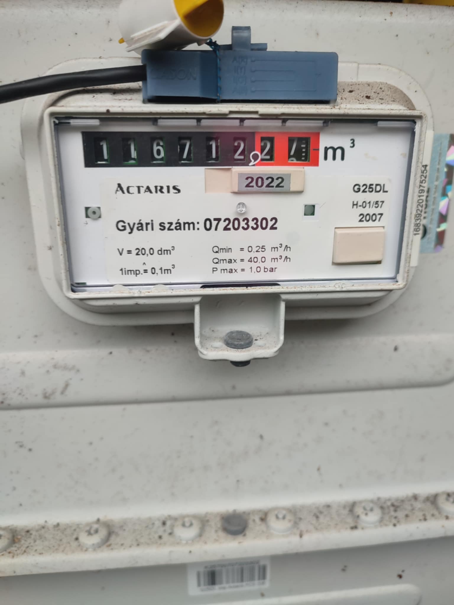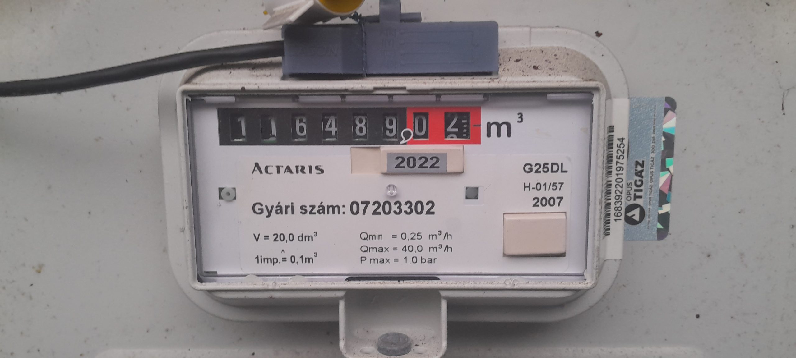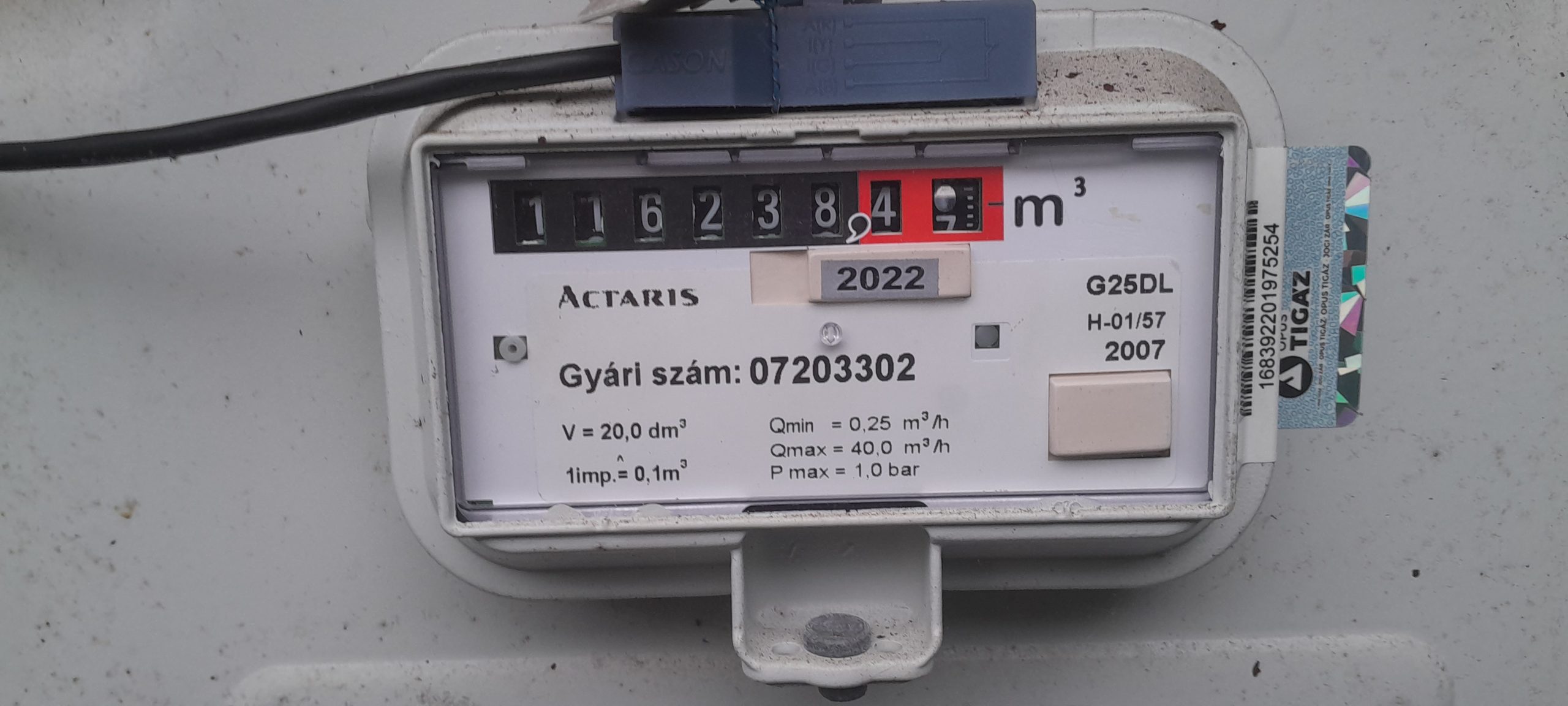 Gázóra állás (m3):