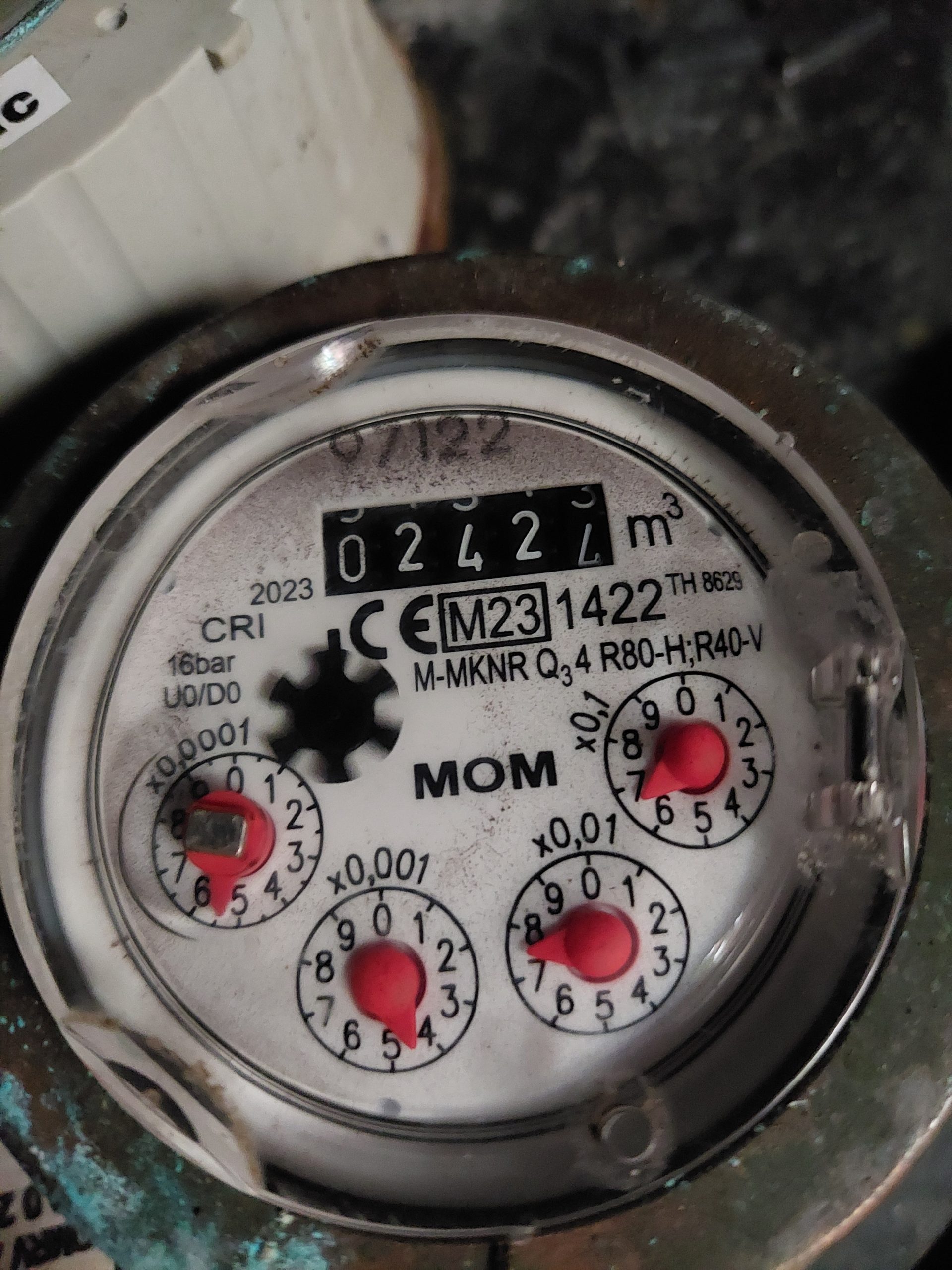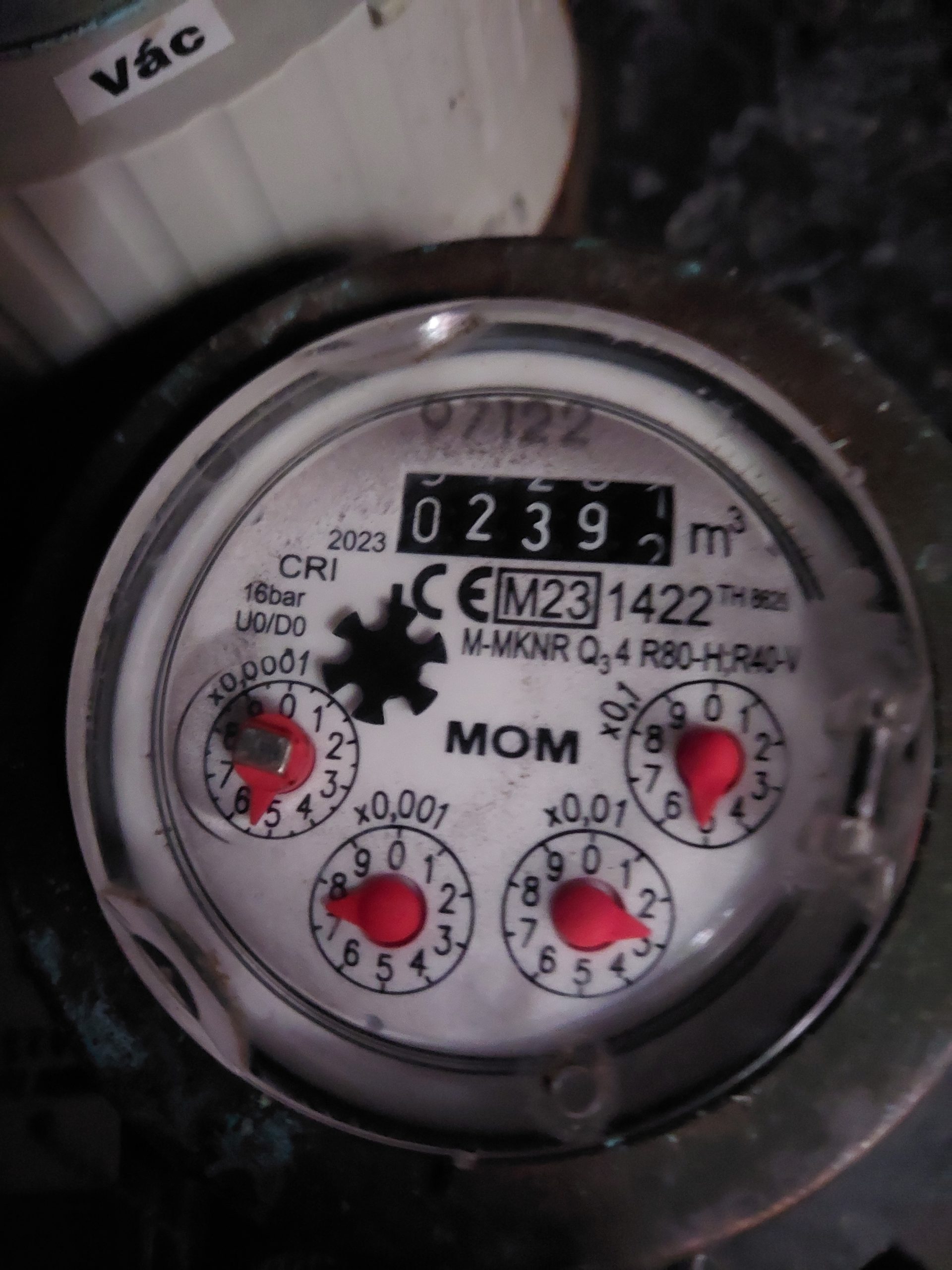 Vízóra óraállás (m3):