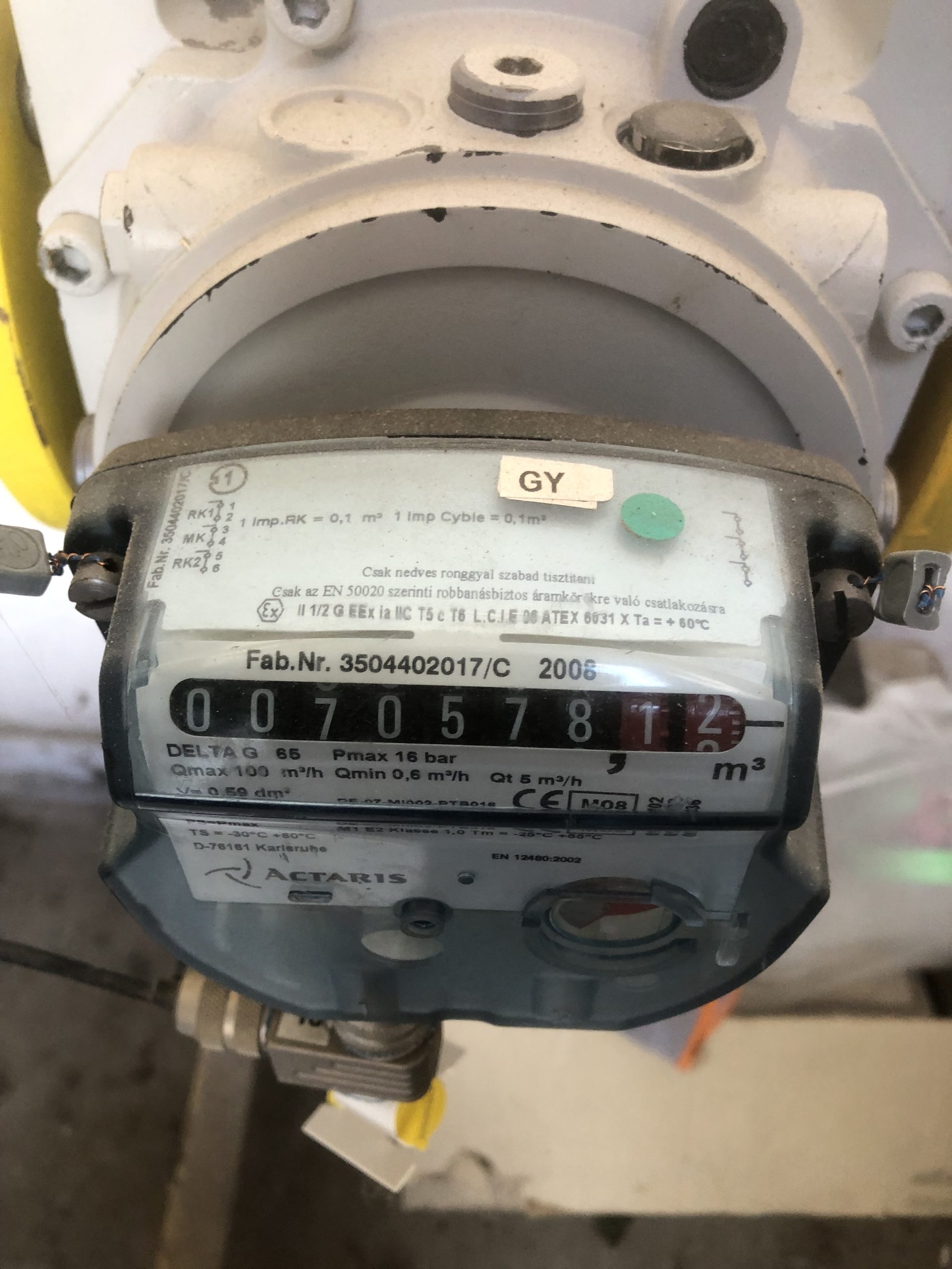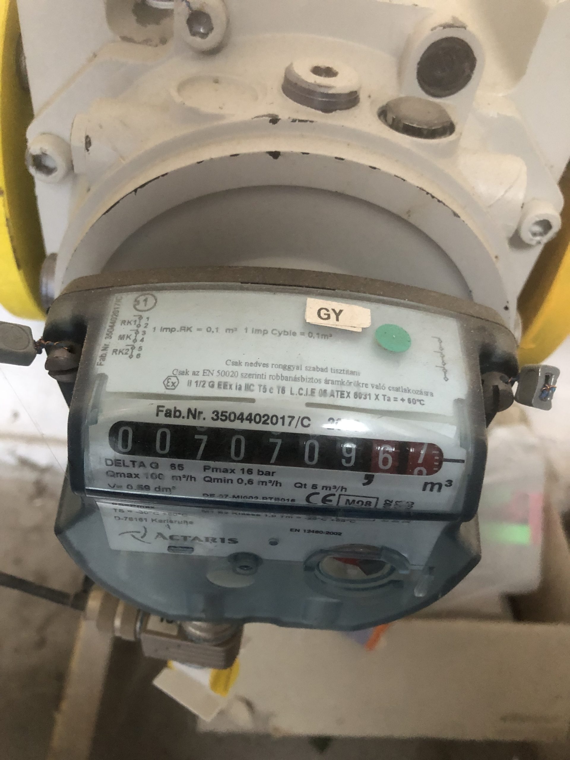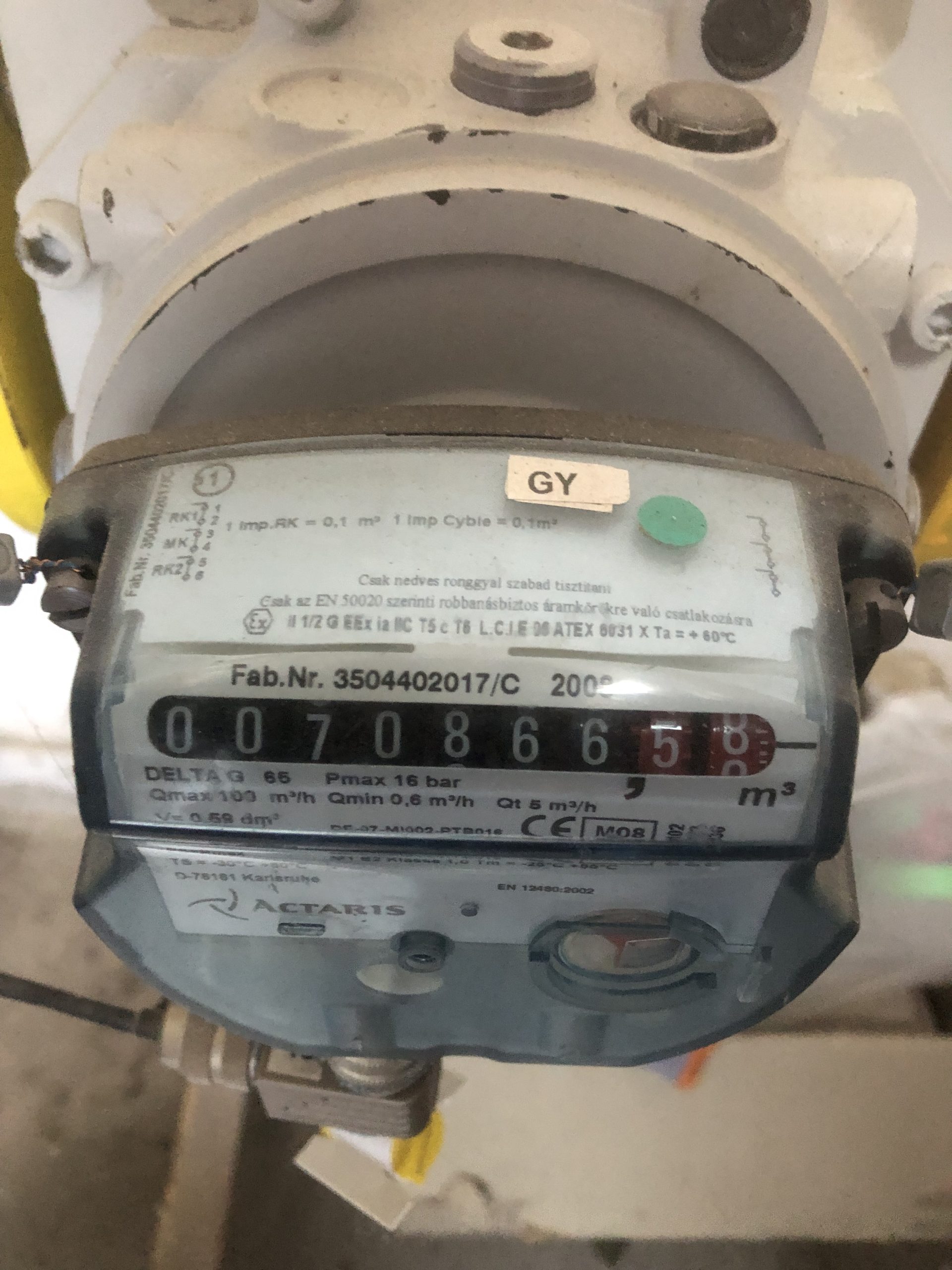 Gázóra állás (m3):