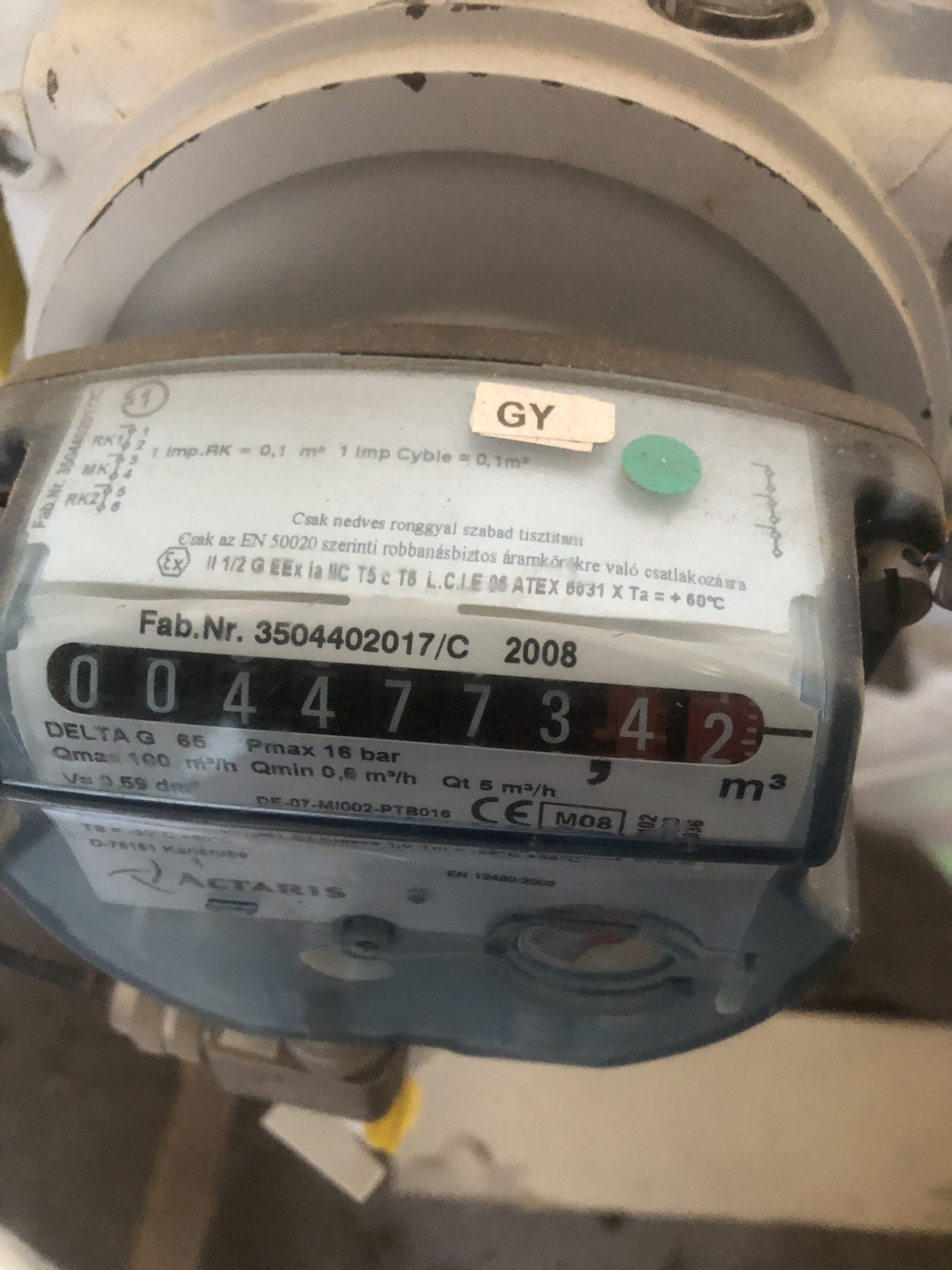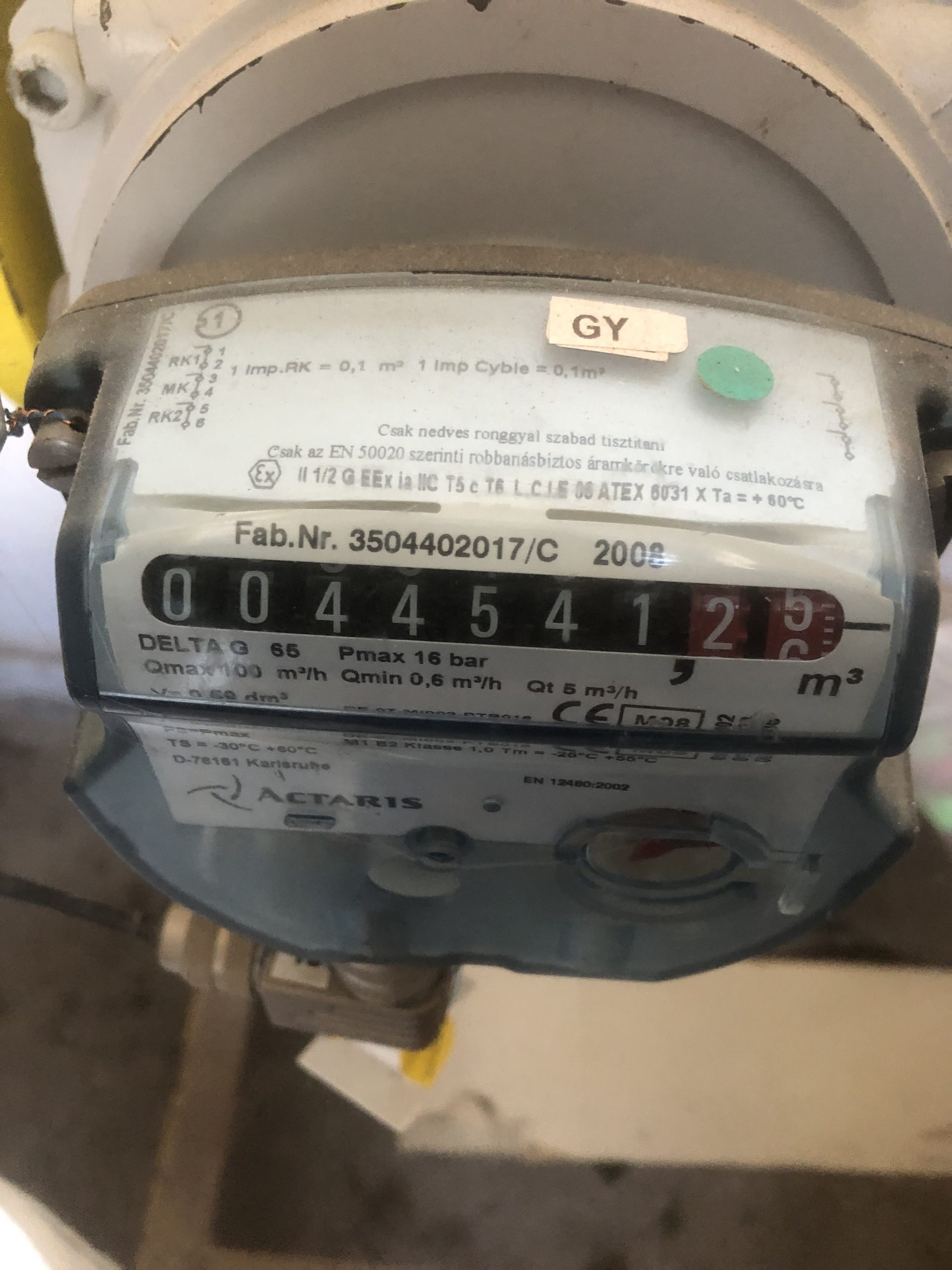 Gázóra állás (m3):