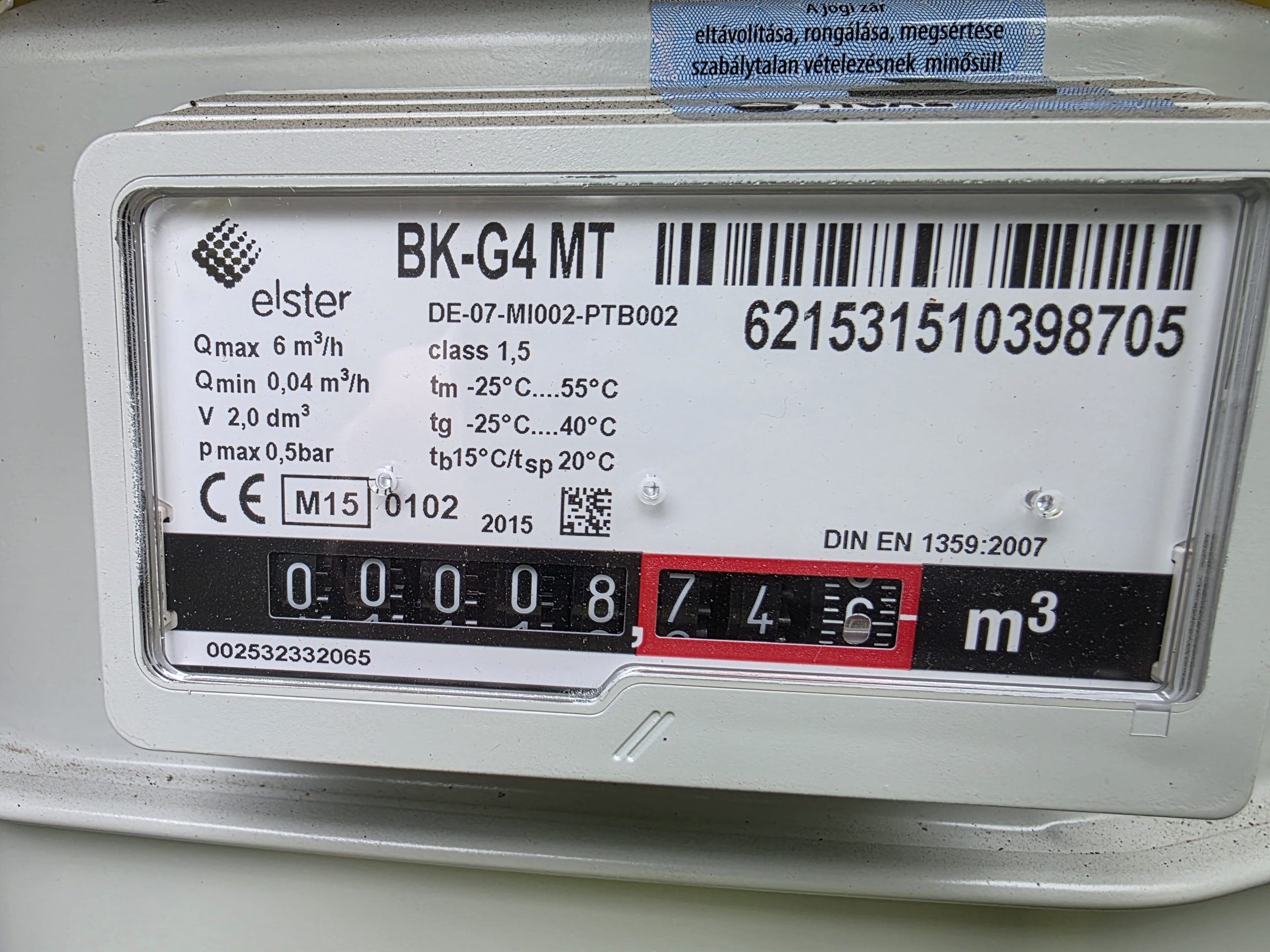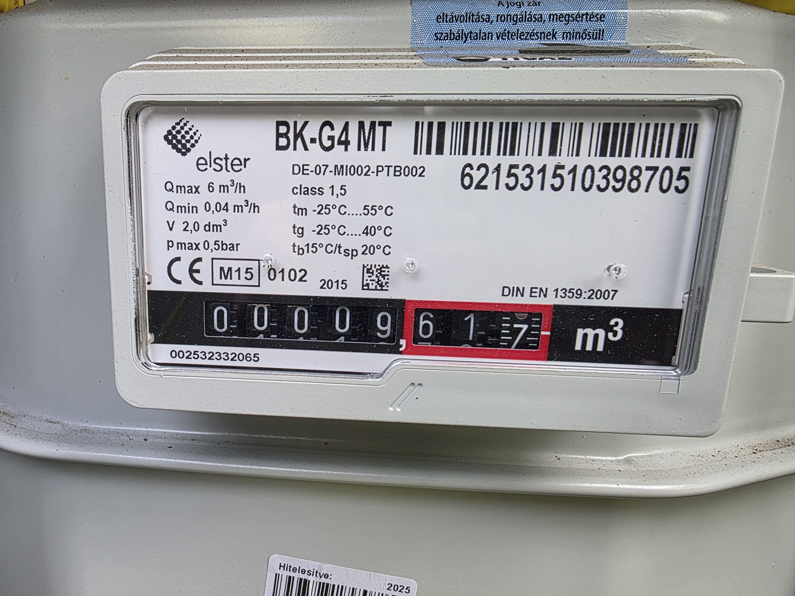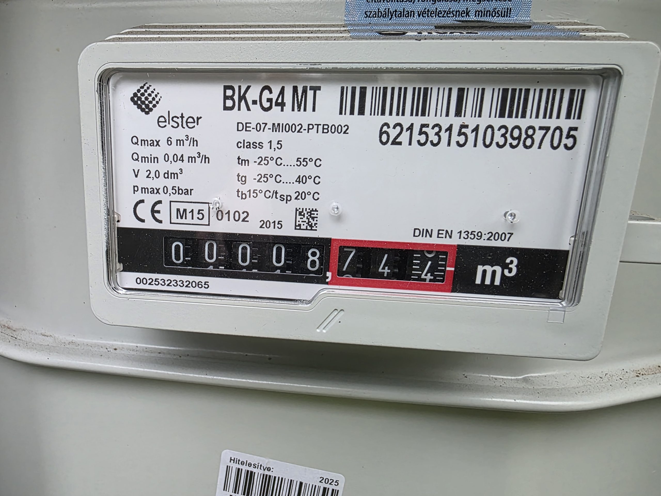 Gázóra állás (m3):
