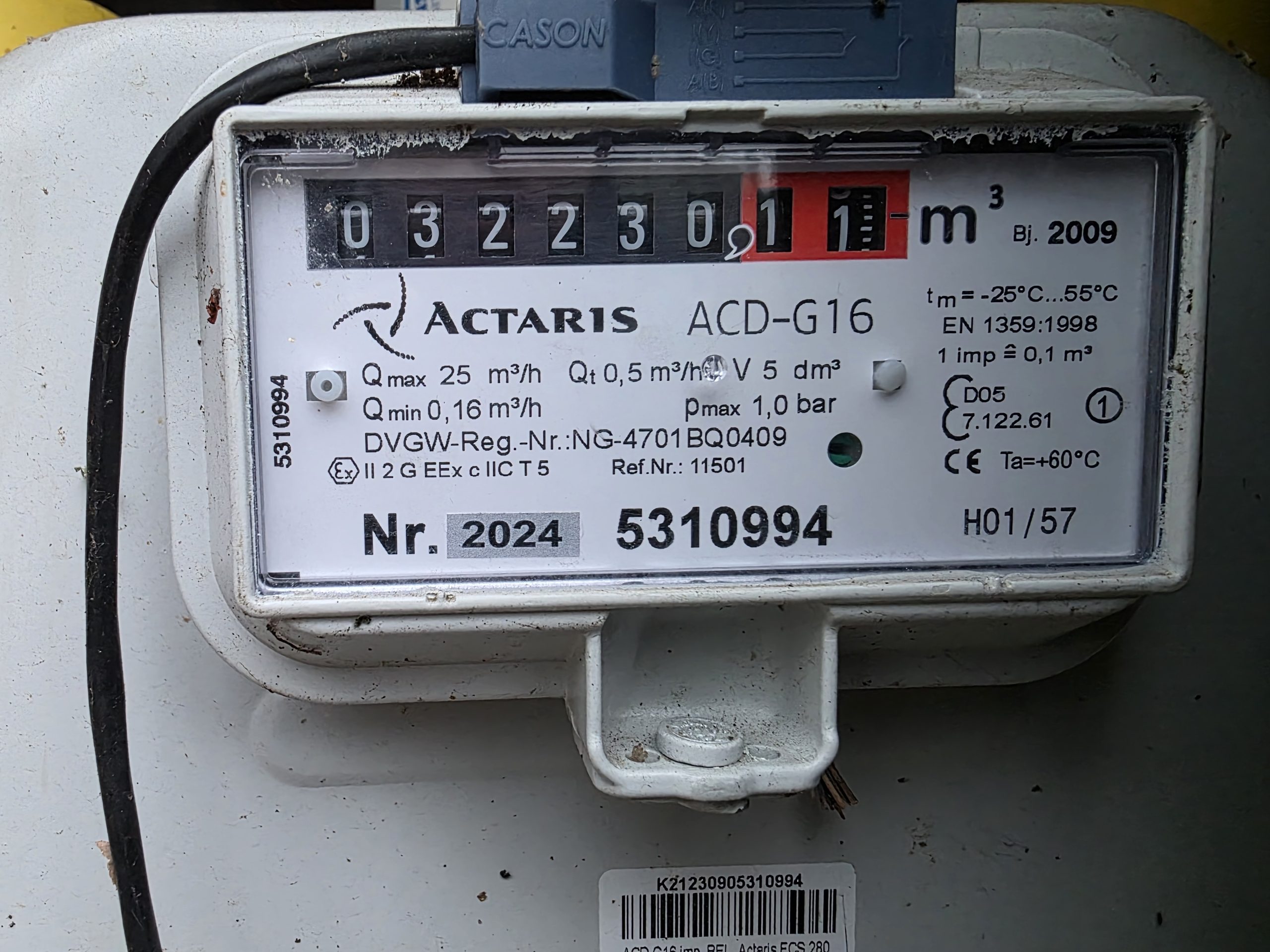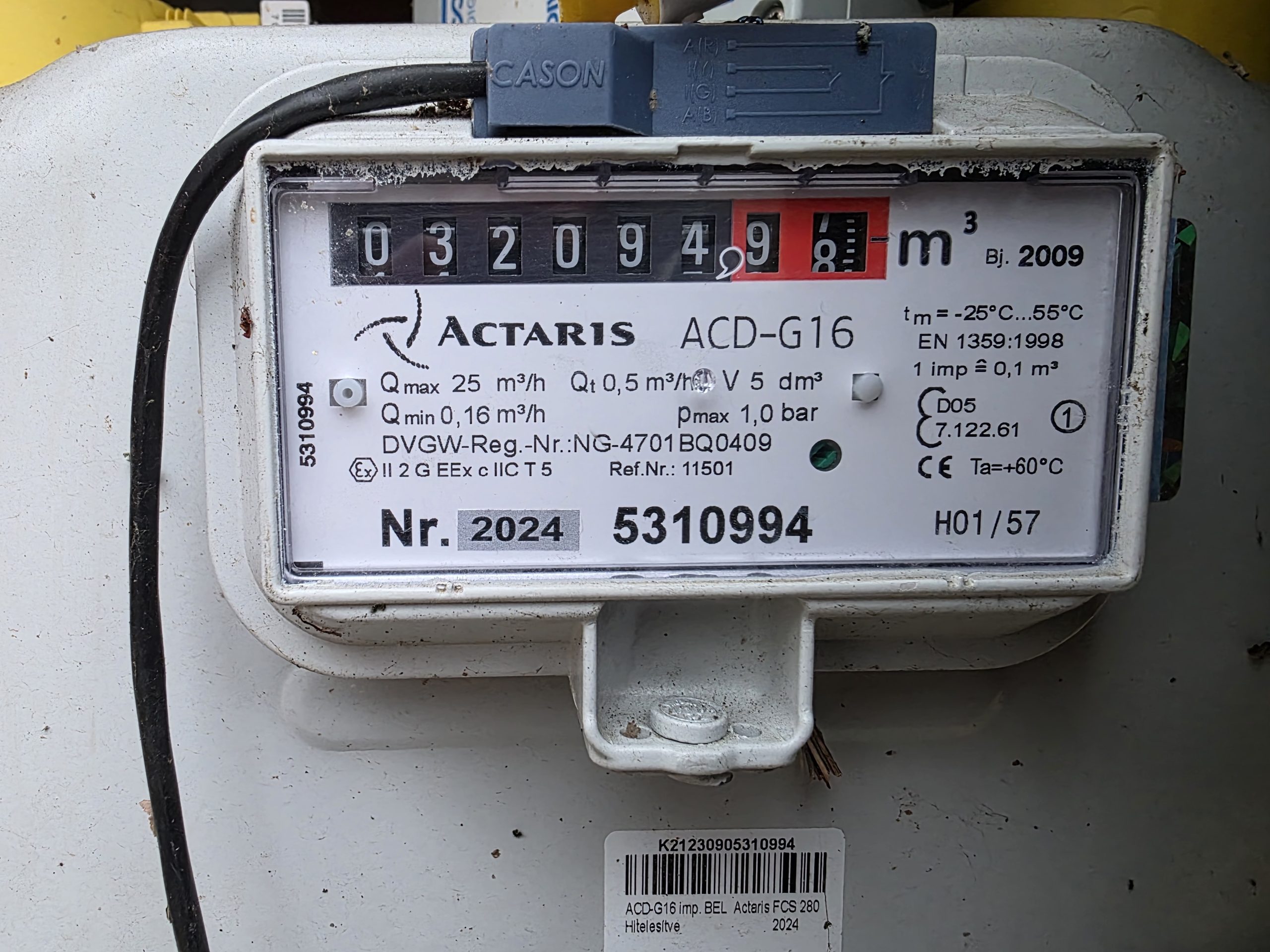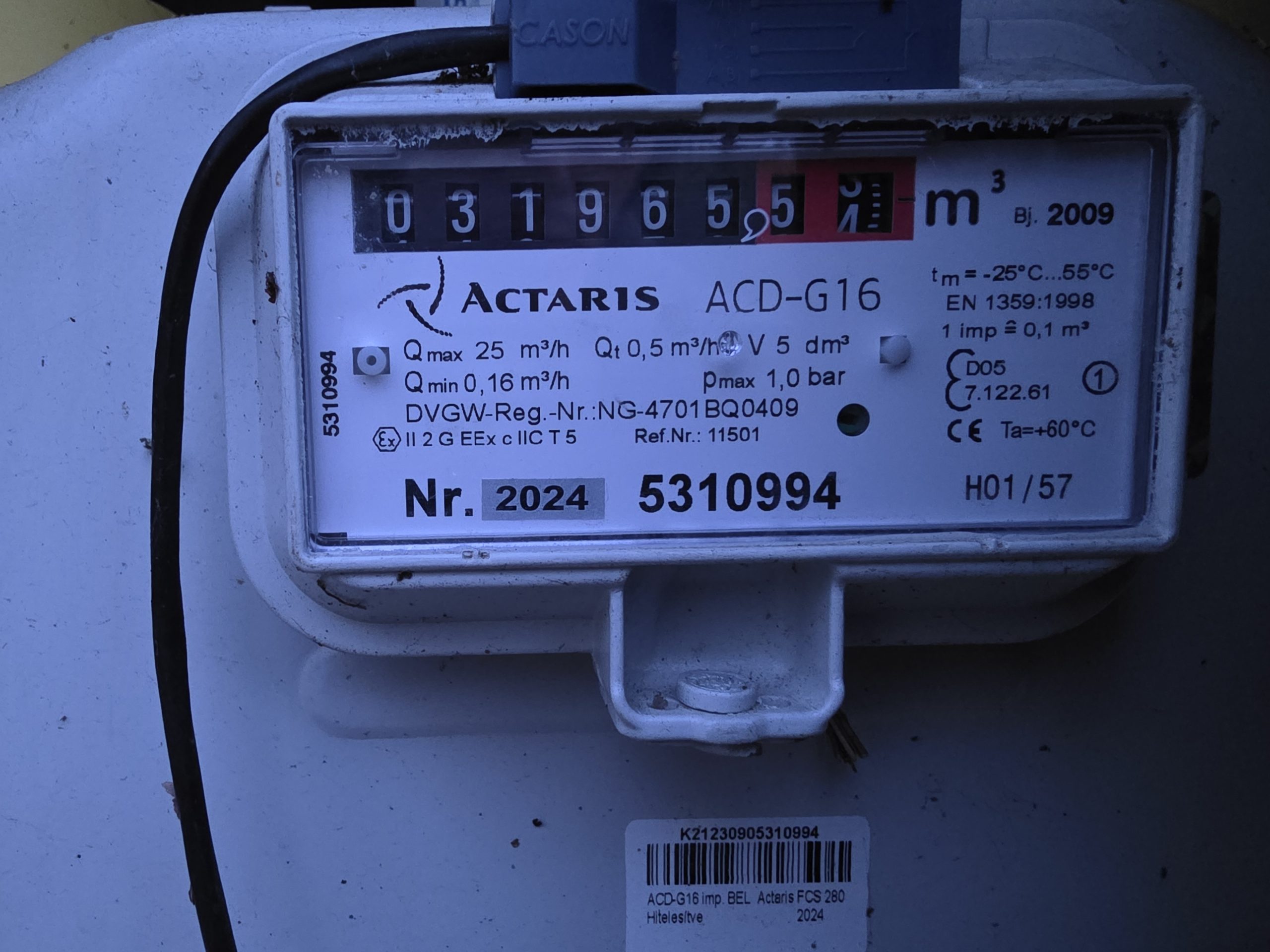 Gázóra állás (m3):