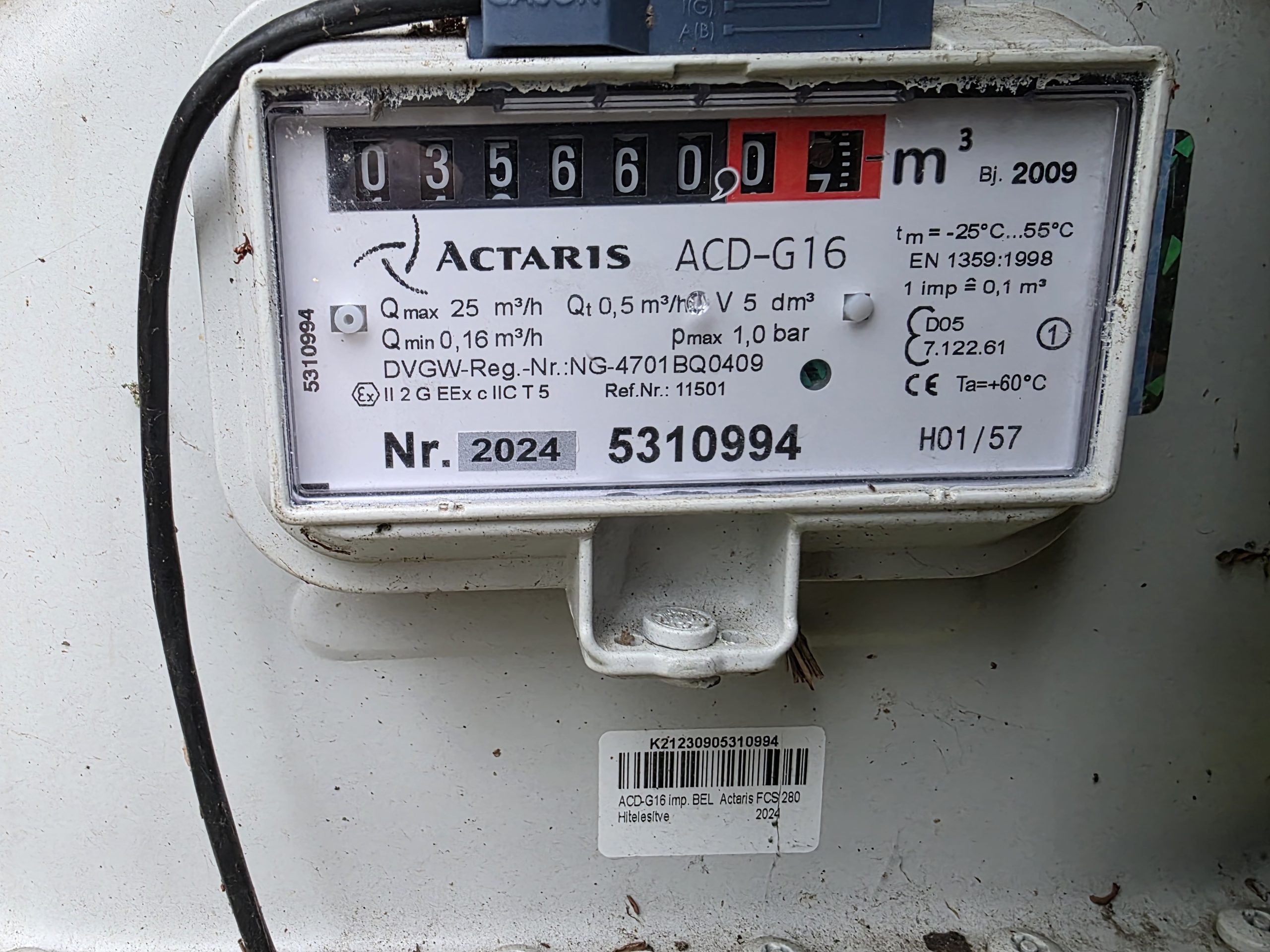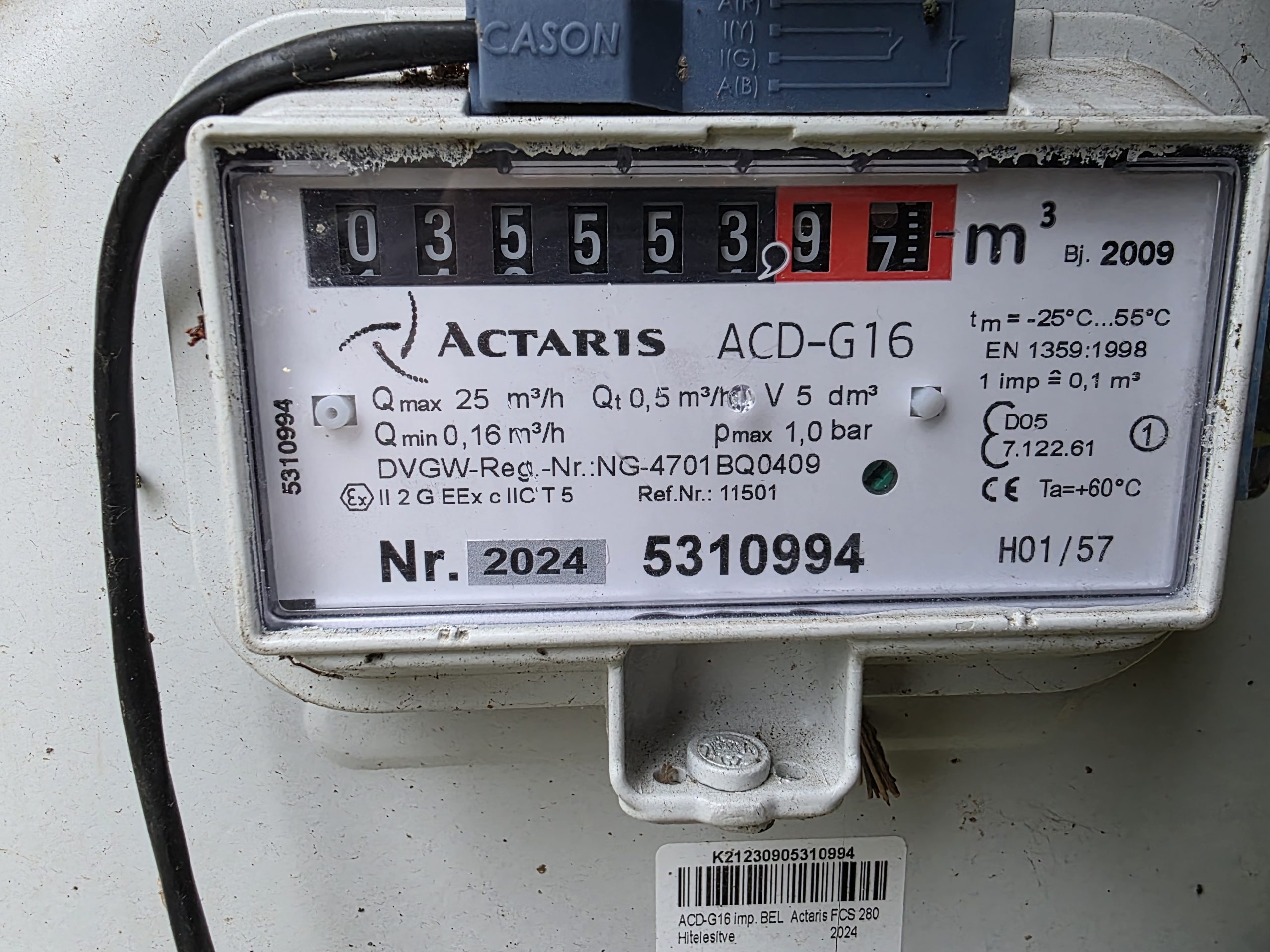 Gázóra állás (m3):