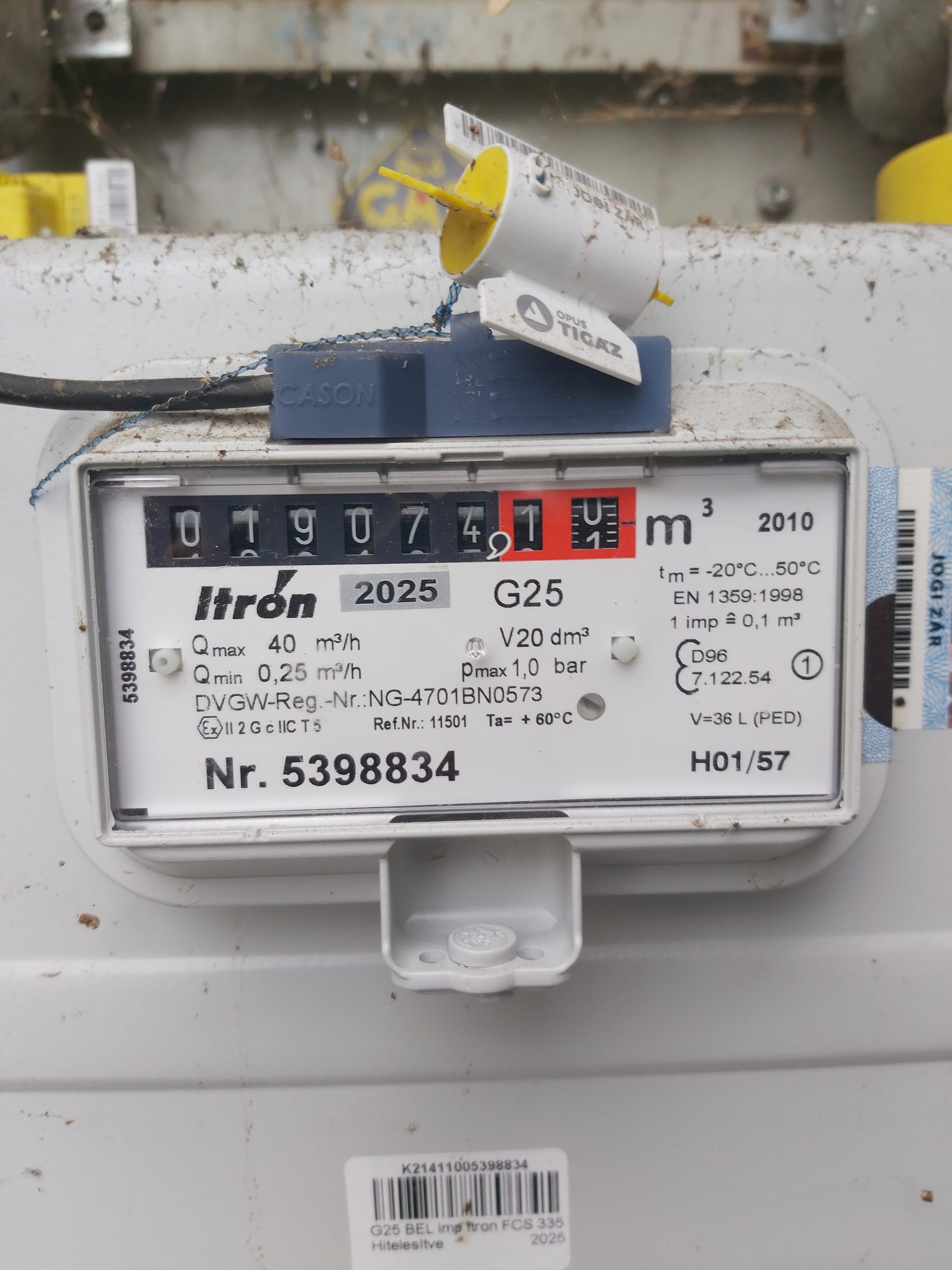 Gázóra állás (m3):